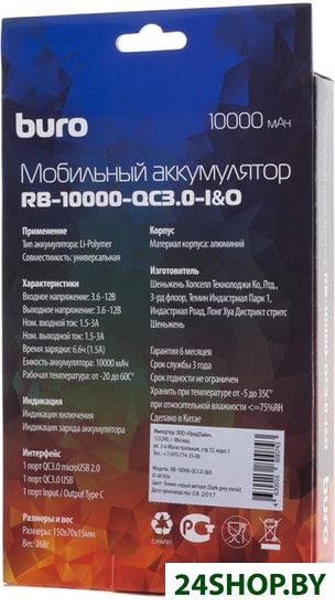 Описание и характеристики Buro RB-10000-QC3.0-I&O (темно-серый)