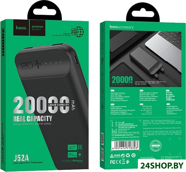 - Ёмкость: 20 000 мАч