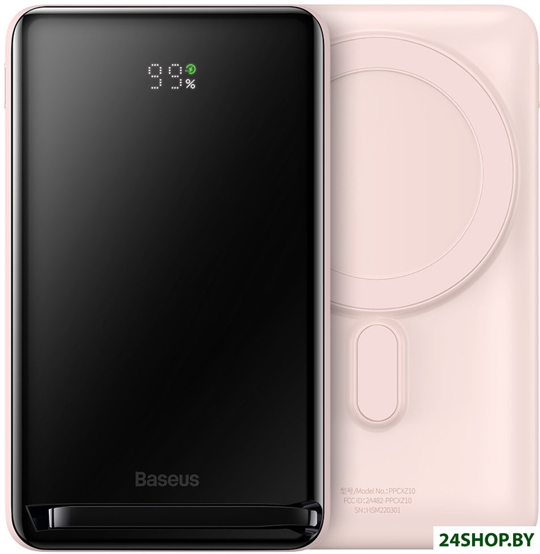 Описание и характеристики Baseus Magnetic Bracket Wireless Power Bank 20W 10000mAh (розовый)