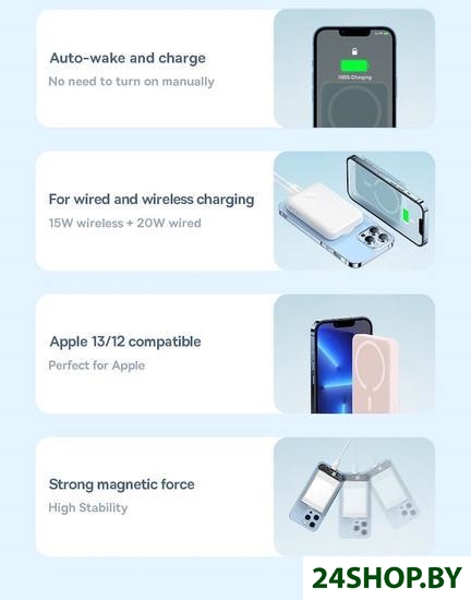 Описание и характеристики Baseus Magnetic Mini Wireless Fast Charge Power Bank 10000mAh 20W (розовый)