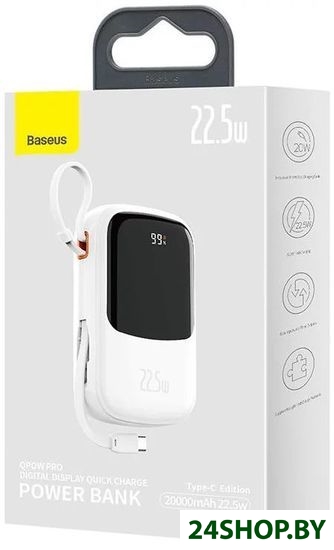 Описание и характеристики Baseus Qpow Pro with cable Type-C built-in 22.5W 20000mAh (белый)