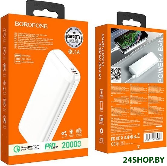 Описание и характеристики Borofone BJ1A Olymp PD+QC3.0 20000mAh (белый)