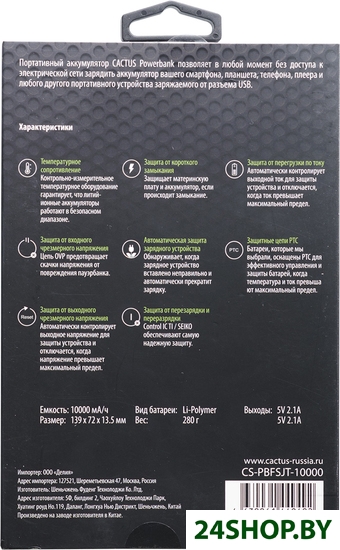 Описание и характеристики Cactus CS-PBFSJT-10000 (черный)