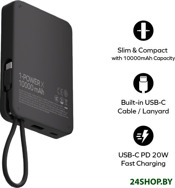 Описание и характеристики Momax 1-Power X Built-in USB-C IP152 10000mAh (черный)