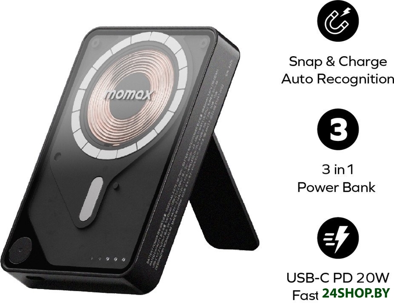 Описание и характеристики Momax 1-Power X Pro+ Magnetic Built-In USB-C IP132 10000mAh (черный)
