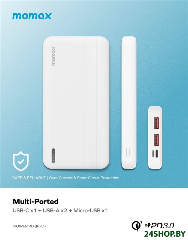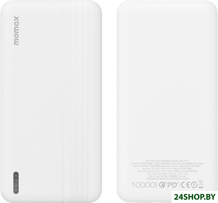 Описание и характеристики Momax iPower PD IP77 10000mAh (белый)