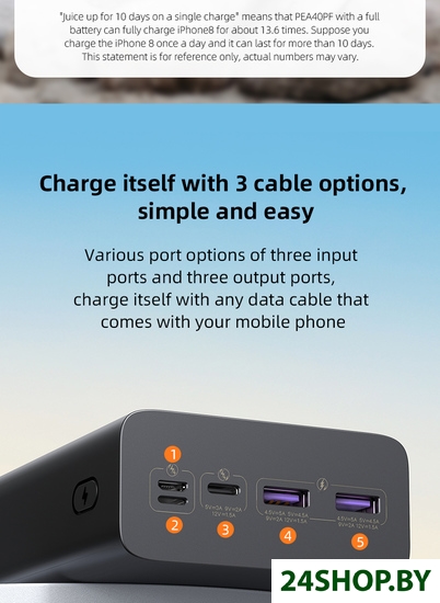 - Ёмкость: 40 000 мА·ч