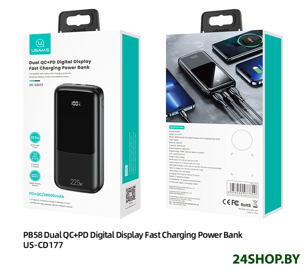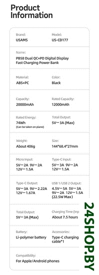 Описание и характеристики Usams US-CD177 PB58 20000mAh (черный)