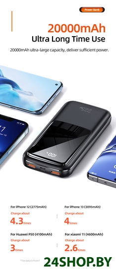 - Ёмкость: 20 000 мА·ч