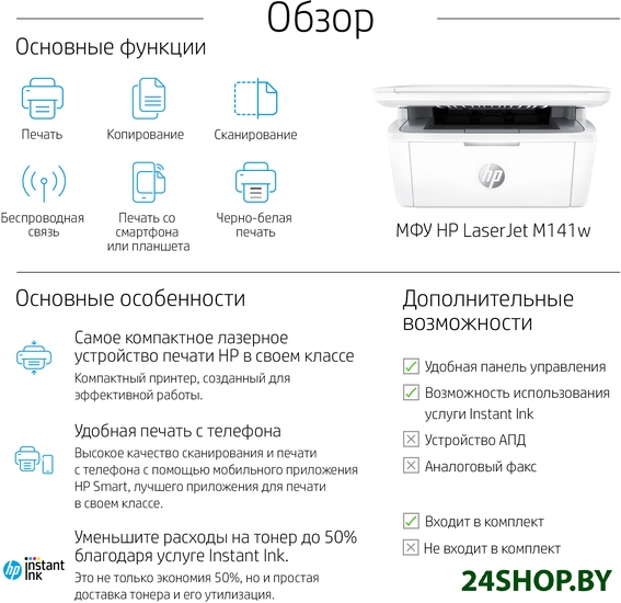 Описание и характеристики HP LaserJet M141w 7MD74A