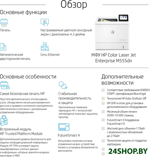 Описание и характеристики HP Color LaserJet Enterprise M555dn 7ZU78A