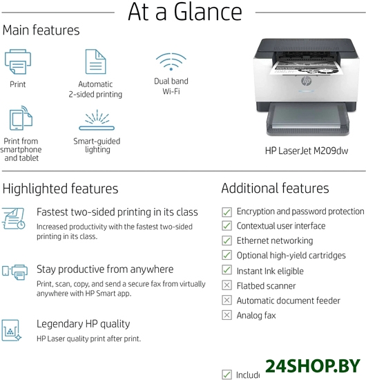 Описание и характеристики HP LaserJet M209dw 6GW62F