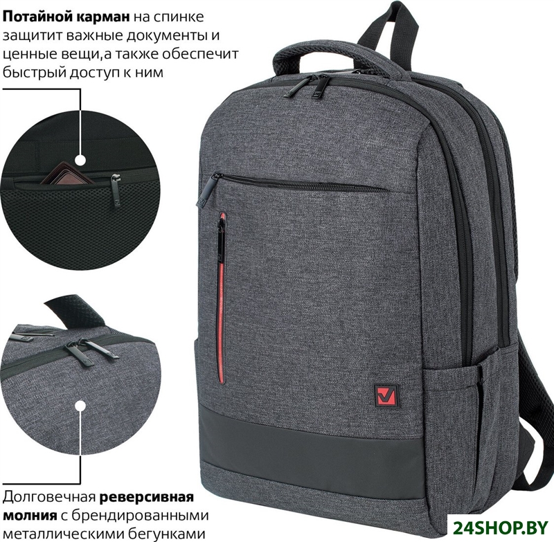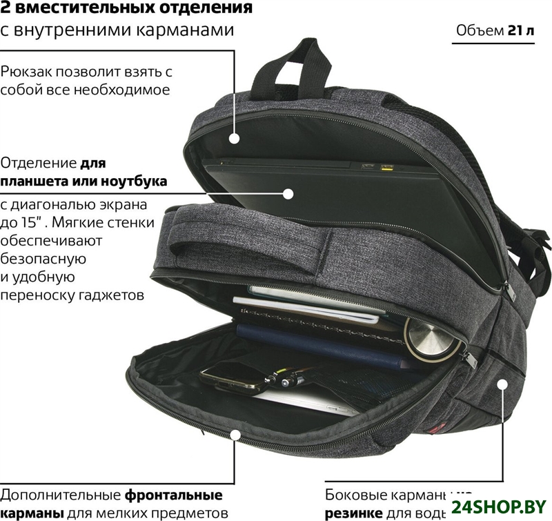 - Функциональные отделения/карманы: для ноутбука, для планшета, для смартфона, органайзер