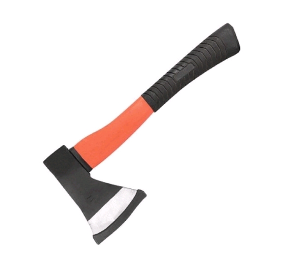 Эргономичная фиберглассовая рукоять усилена пластиком. Вставка из термопластичной износоустойчивой резины не даёт скользить рукам во время работы, обеспечивает комфортный захват инструмента. Скругленное лезвие имеет большую длину, так что помимо рубящего удара присутствует и режущая составляющая. Предназначен для рубки, колки и тески древесины при проведении плотничных работ. Лезвие топора защищено специальной накладкой.
