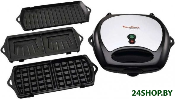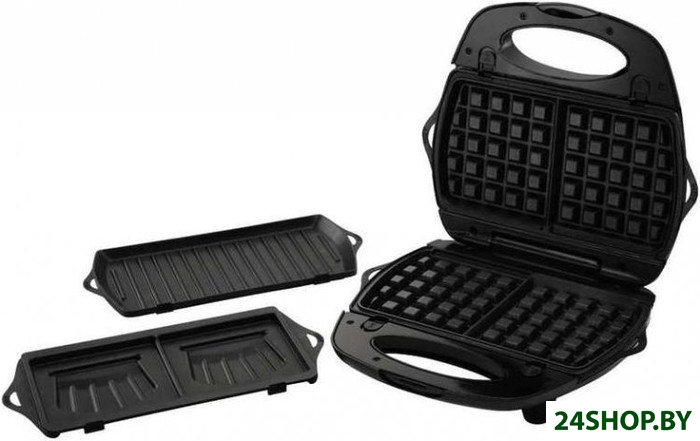 - Рабочая поверхность: гриль-пластина, форма для 2 ломтиков хлеба, вафельница
