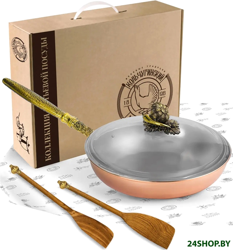 - Состав набора: крышка, лопатка (2 шт.), сковорода
