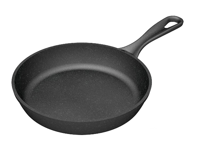 Алюминий - наиболее распространенный материал, легкий, с хорошей теплопроводностью. Сковороды из алюминия изготавливаются методом штамповки (дешево, но не обеспечивает прочности и устойчивости к деформациям), ковки или литья. Алюминиевые сковороды не пригодны для индукционных плит (если не используется составное дно), требуют применения антипригарного покрытия. Чугун - традиционный материал, применяемый для изготовления посуды издревле и не потерявший актуальность до сих пор. Основное преимущество чугуна - он не требует антипригарного покрытия при правильном прокаливании, также он хорошо сохраняет тепло. Недостатков у чугуна много: большой вес, большая толщина, подверженность коррозии, непрезентабельный внешний вид. Нержавеющая сталь - основной материал для изготовления другой посуды, в сковородах применяется значительно реже. Сталь легче чугуна, но тяжелее алюминия, может применяться без антипригарного покрытия, поэтому безопасна и не требует особенного ухода. Недостаток нержавеющей стали - большой вес, худшая теплопроводность, появление пятен.