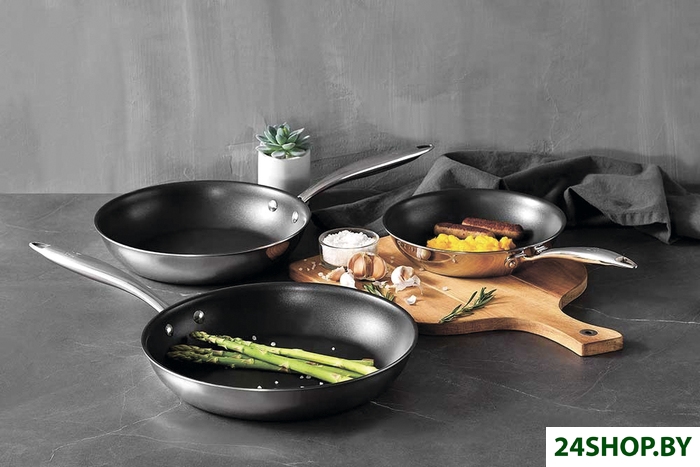 Алюминий - наиболее распространенный материал, легкий, с хорошей теплопроводностью. Сковороды из алюминия изготавливаются методом штамповки (дешево, но не обеспечивает прочности и устойчивости к деформациям), ковки или литья. Алюминиевые сковороды не пригодны для индукционных плит (если не используется составное дно), требуют применения антипригарного покрытия. Чугун - традиционный материал, применяемый для изготовления посуды издревле и не потерявший актуальность до сих пор. Основное преимущество чугуна - он не требует антипригарного покрытия при правильном прокаливании, также он хорошо сохраняет тепло. Недостатков у чугуна много: большой вес, большая толщина, подверженность коррозии, непрезентабельный внешний вид. Нержавеющая сталь - основной материал для изготовления другой посуды, в сковородах применяется значительно реже. Сталь легче чугуна, но тяжелее алюминия, может применяться без антипригарного покрытия, поэтому безопасна и не требует особенного ухода. Недостаток нержавеющей стали - большой вес, худшая теплопроводность, появление пятен.