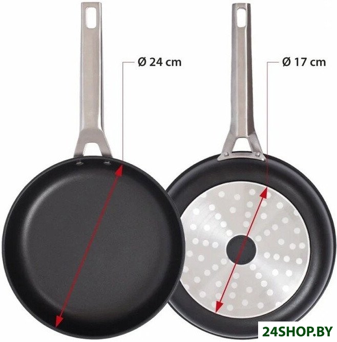 Алюминий - наиболее распространенный материал, легкий, с хорошей теплопроводностью. Сковороды из алюминия изготавливаются методом штамповки (дешево, но не обеспечивает прочности и устойчивости к деформациям), ковки или литья. Алюминиевые сковороды не пригодны для индукционных плит (если не используется составное дно), требуют применения антипригарного покрытия. Чугун - традиционный материал, применяемый для изготовления посуды издревле и не потерявший актуальность до сих пор. Основное преимущество чугуна - он не требует антипригарного покрытия при правильном прокаливании, также он хорошо сохраняет тепло. Недостатков у чугуна много: большой вес, большая толщина, подверженность коррозии, непрезентабельный внешний вид. Нержавеющая сталь - основной материал для изготовления другой посуды, в сковородах применяется значительно реже. Сталь легче чугуна, но тяжелее алюминия, может применяться без антипригарного покрытия, поэтому безопасна и не требует особенного ухода. Недостаток нержавеющей стали - большой вес, худшая теплопроводность, появление пятен.