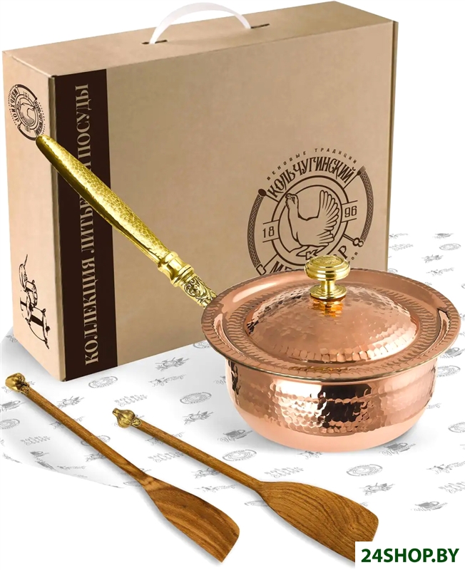 - Состав набора: крышка, лопатка (2 шт.), сотейник