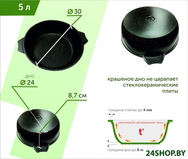 - Толщина дна: 6 мм