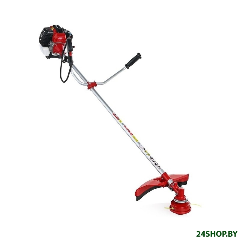 - Аксессуары: Двигатель, штанга, рукоятка U-образная, шпуля, нож 3Т, кожух защитный, ремень наплечный, набор инструмента, канистра.