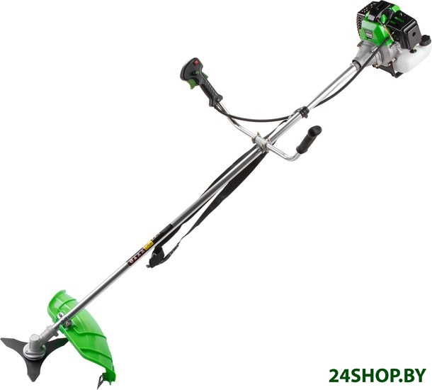 - Аксессуары: Нож трехлопастной. Ремень наплечный. Косильная головка. Набор инструментов для сборки. Емкость для смешивания топлива.