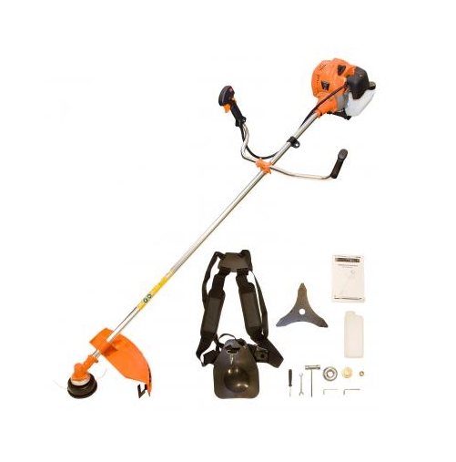 - Аксессуары: Головка триммерная полуавтоматическая.Трехлопастной нож.Ремень плечевой двухплечный.Защитный кожух.Емкость для приготовления топливной смеси.Комплект крепежных изделий для сборки. Комплект инструмента для сборки и обслуживания.