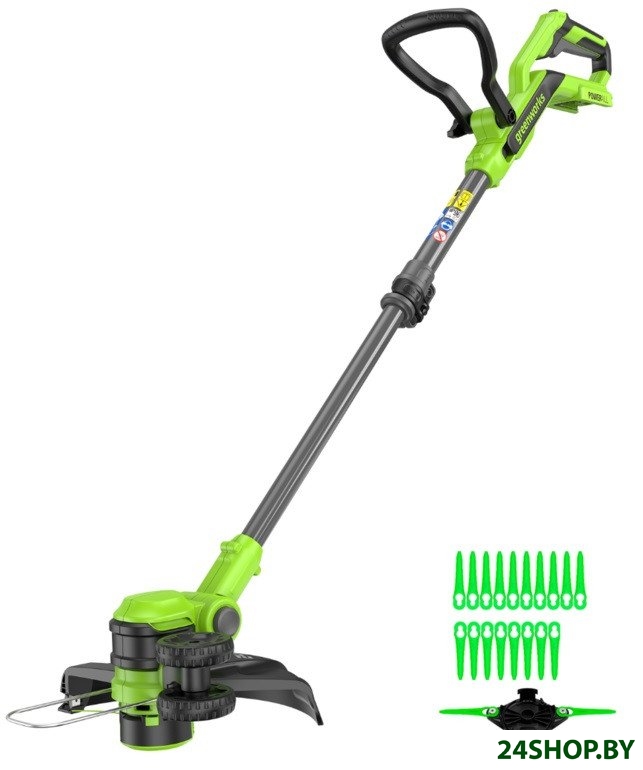 - Комплектация: - Триммер аккумуляторный Greenworks 24V G24LT301 (арт.2113207);- Пластиковые ножи: 20 шт.;- Диск для установки пластиковых ножей;- Руководство по эксплуатации;- Гарантийный талон.