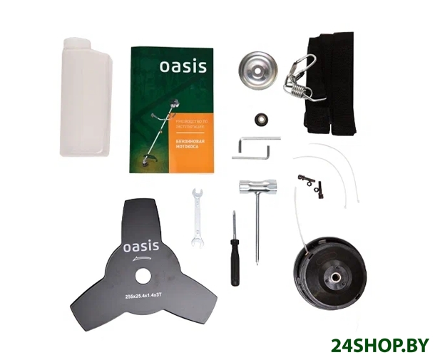 - Аксессуары: Триммерная катушка с леской – 1 шт.Нож 3-х лопастной – 1 шт.Наплечный ремень – 1 шт.Ёмкость для смешивания – 1 шт.Монтажный набор – 1 шт.Руководство по эксплуатации – 1 шт.