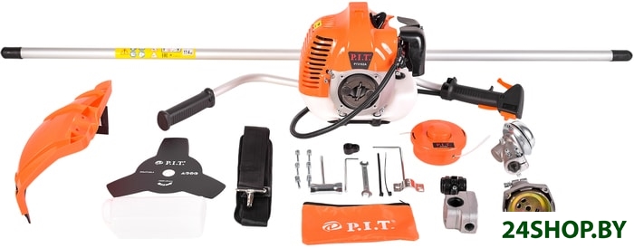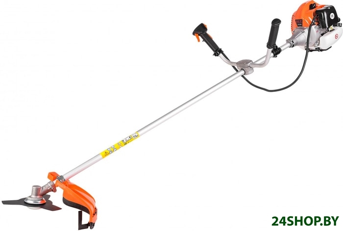- Аксессуары: Триммер (в частично разобранном виде), коробка, ремень наплечный, шпуля с леской, диск трехлопастной, набор ключей, набор крепежа, кожух защитный, канистра, инструкция по эксплуатации