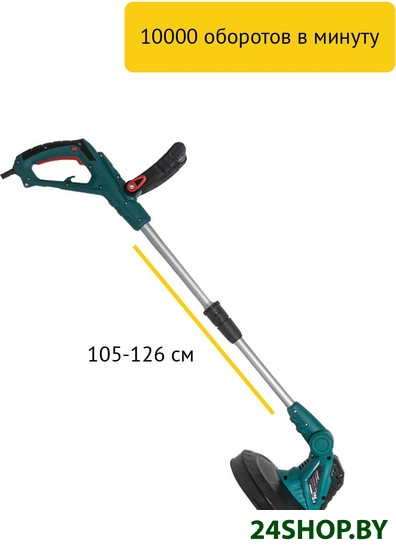 - Комплектация: - триммер, - дополнительная рукоятка с крепежом, - защитный экран, - ограничитель, - винты ST4*14 6 шт., - катушка с леской 1,6 мм х 6 м, - руководство по эксплуатации, - гарантийный талон.