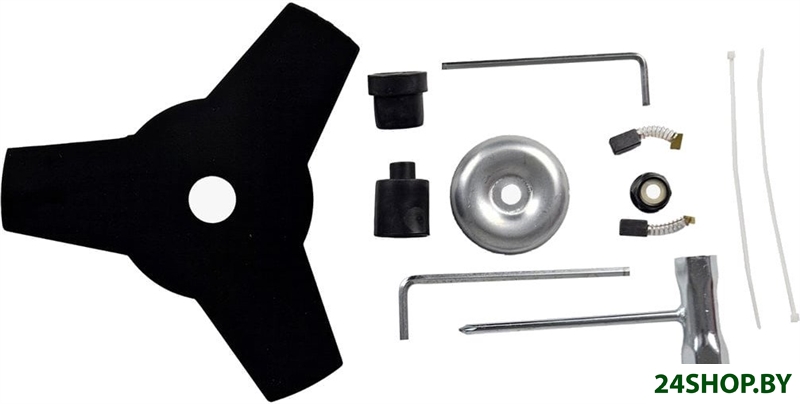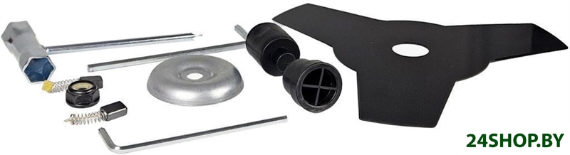 - Режущая оснастка в комплекте: леска, металлический нож