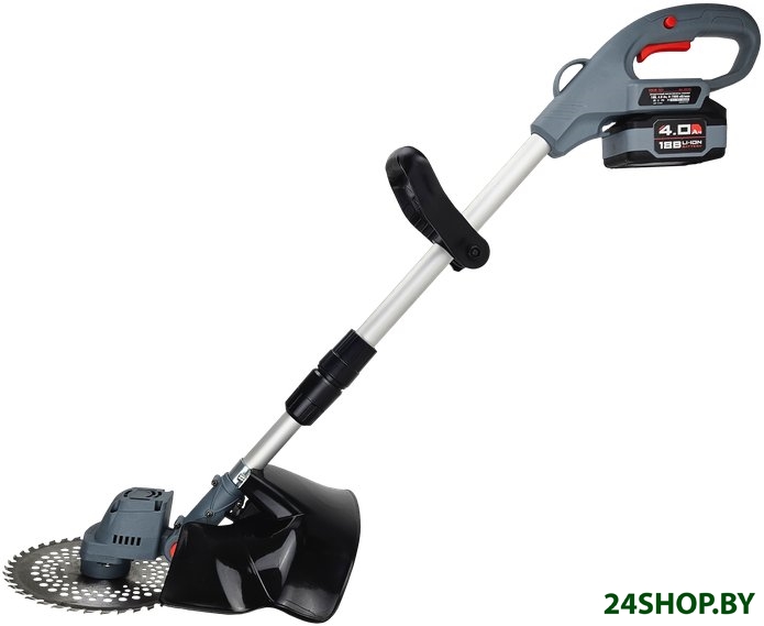 - Комплектация: - Триммер;- Зарядное устройство;- Аккумулятор 4.0 Ач;- Кожух защитный;- Нож;- Рукоятка с крепежом;- Ключ;- Коробка;- Инструкция с гарантийным талоном.