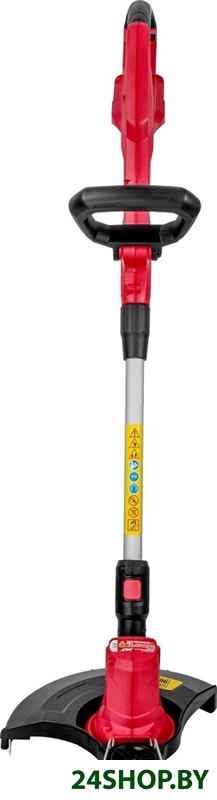 - Комплектация: - леска (5 м), - триммерная головка, - защитный кожух, - кромочное колесо, - инструмент (ключ),- аккумулятор