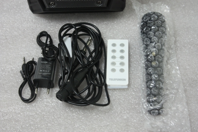 - Комплектация: - адаптер питания;- USB кабель;- AUX кабель;- проводной микрофон;- пульт ДУ;- документация.
