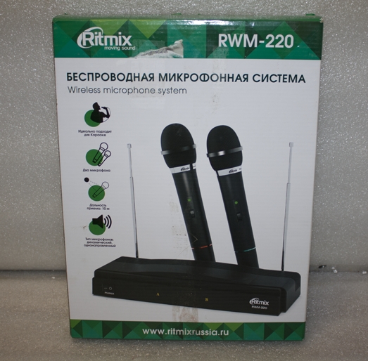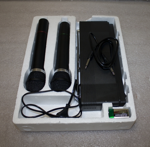 - Комплект поставки: в комплекте 2 микрофона, ресивер, батареи 9 В (2 шт.)