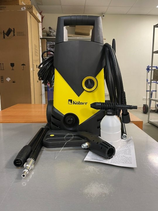- Комплектация: пистолет-распылитель, удлинитель пистолета с соплом, гибкий шланг высокого давления, емкость для моющих средств, переходник, игла для очистки сопла