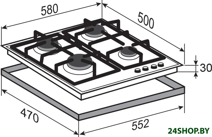 - Газовые конфорки: 4