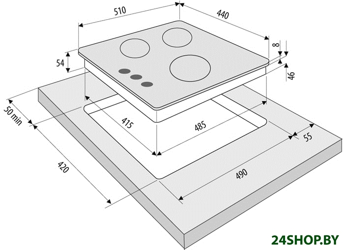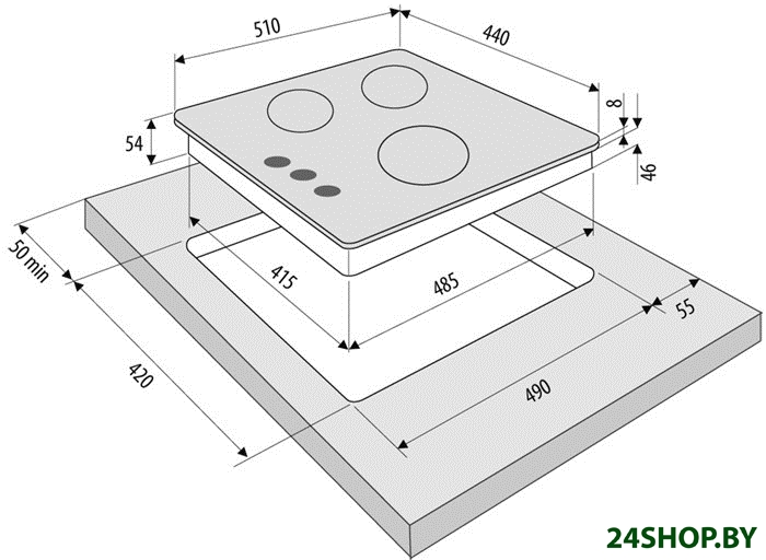 - Количество конфорок: 3