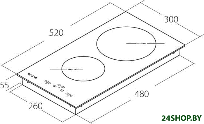 - Индукционные конфорки: 2