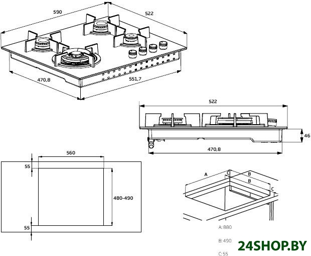 - Газовые конфорки: 4