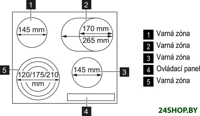 - Овальные/прямоугольные конфорки: 1