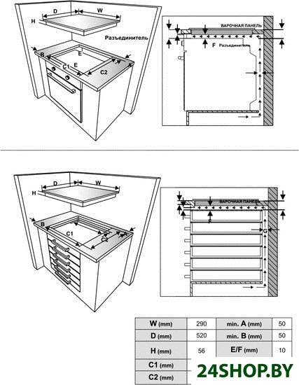 - Дополнительные принадлежности: аксессуары для варочных панелей