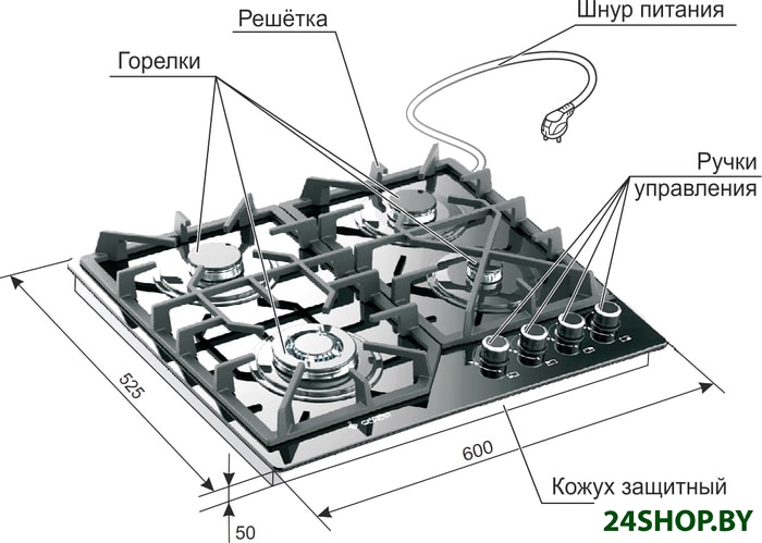 - Газовые конфорки: 4
