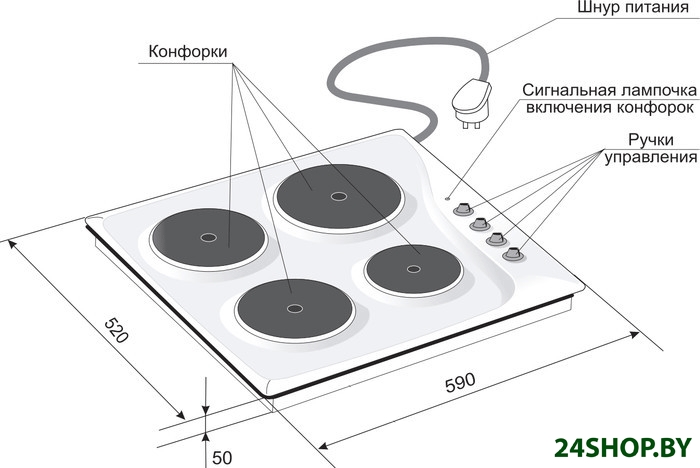 - Количество конфорок: 4