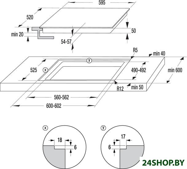 - Подробная информация о конфорках: Передняя левая, мм//кВт - 120/210//0.8/2.2Задняя левая, мм//кВт - 145//1.2Передняя правая, мм//кВт - 145//1.2Задняя правая, мм//кВт - 17×26.5//1.5/2.4