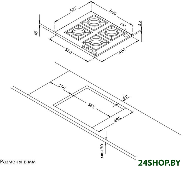 - Газовые конфорки: 4