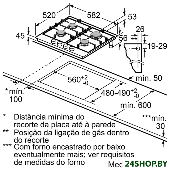 - Газовые конфорки: 4