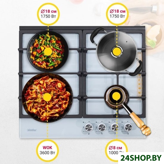 - Газовые конфорки: 4